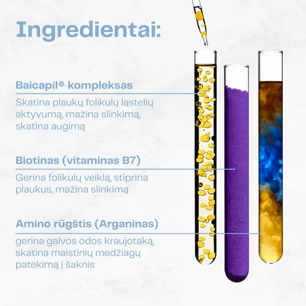 | Baicapil® kompleksas - skatina plaukų folikulų ląstelių aktyvumą, mažina slinkimą, skatina augimą | ![]() |