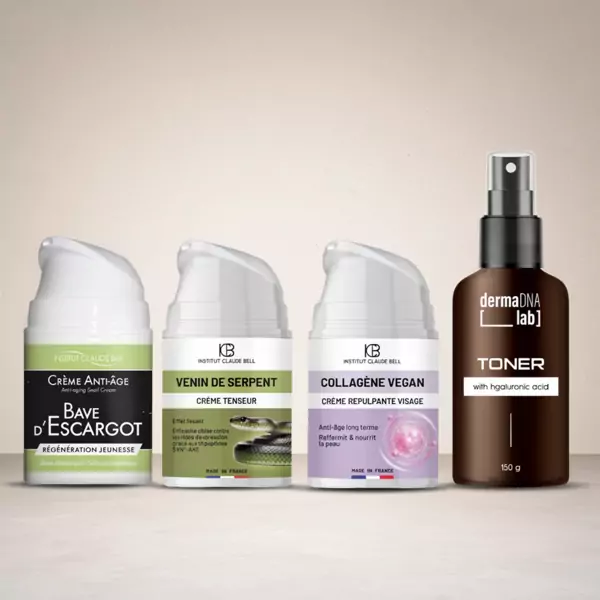 Revoliucinis senėjimą stabdantis veido kremas su gyvačių nuodais (50 ml): AQUA, DICAPRYLYL CARBONATE, GLYCERIN, GLYCERIN STEARATE, CETEARYL ALCOHOL, ARGANIA, SPINOSA KERNEL OIL, HELIANTHUS ANNUUS SEED OIL, SODIUM STEAROYL GLUTAMATE, SODIUM POLYACRYLATE, TOCOPHERYL ACETATE, XANTHAN GUM, CETEARYL GLUCOSIDE, DIOSCOREA COMPOSITA ROOT EXTRACT, CARBOMER, BUTYLENE GLYCOL, SODIUM LACTATE, DIPEPTIDE DIAMINOBUTYROYL BENZYLAMIDE DIACETATE, SODIUM CHLORIDE, POLYSORBATE 20, PALMITOYL PENTAPEPTIDE-4, CITRIC ACID, TETRASODIUM EDTA, PHENOXYETHANOL, CHLORPHENESIN, PARFUM.